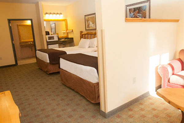 Consider the Great Wolf Lodge Wisconsin Dells Standard Suites if you want to save a little money but still have the adventure for your family. The standard suites are more like standard rooms with either two (2) queen beds or a single king. Some of the rooms have a fireplace and most have a patio or a balcony. All of the suites at the Great Wolf Lodge have access to the Indoor Water Park and the Outdoor Water Park when it is open. Also, all of the fun Recreation and activities are also included.