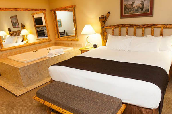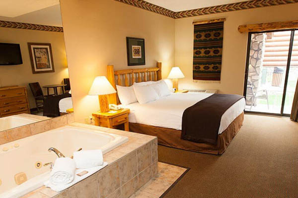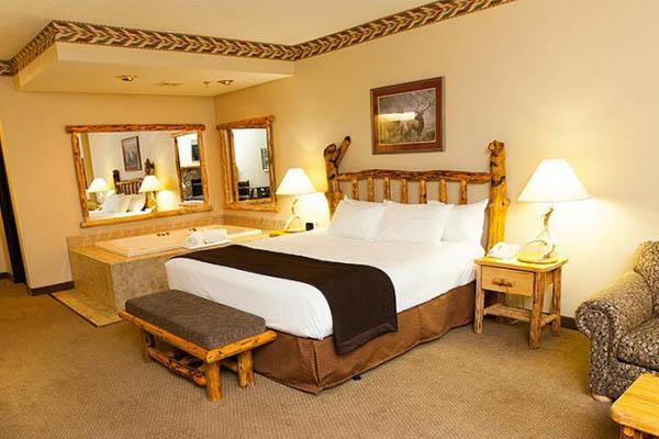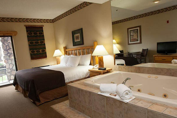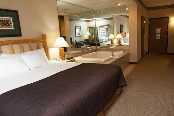 Break out the bubbly and get some strawberries dipped in chocolate. The Junior Whirlpool Suite says romance and is ready for a night of fun. Relax in your King Bed and soak in the Jacuzzi tub after a hard day in the parks.